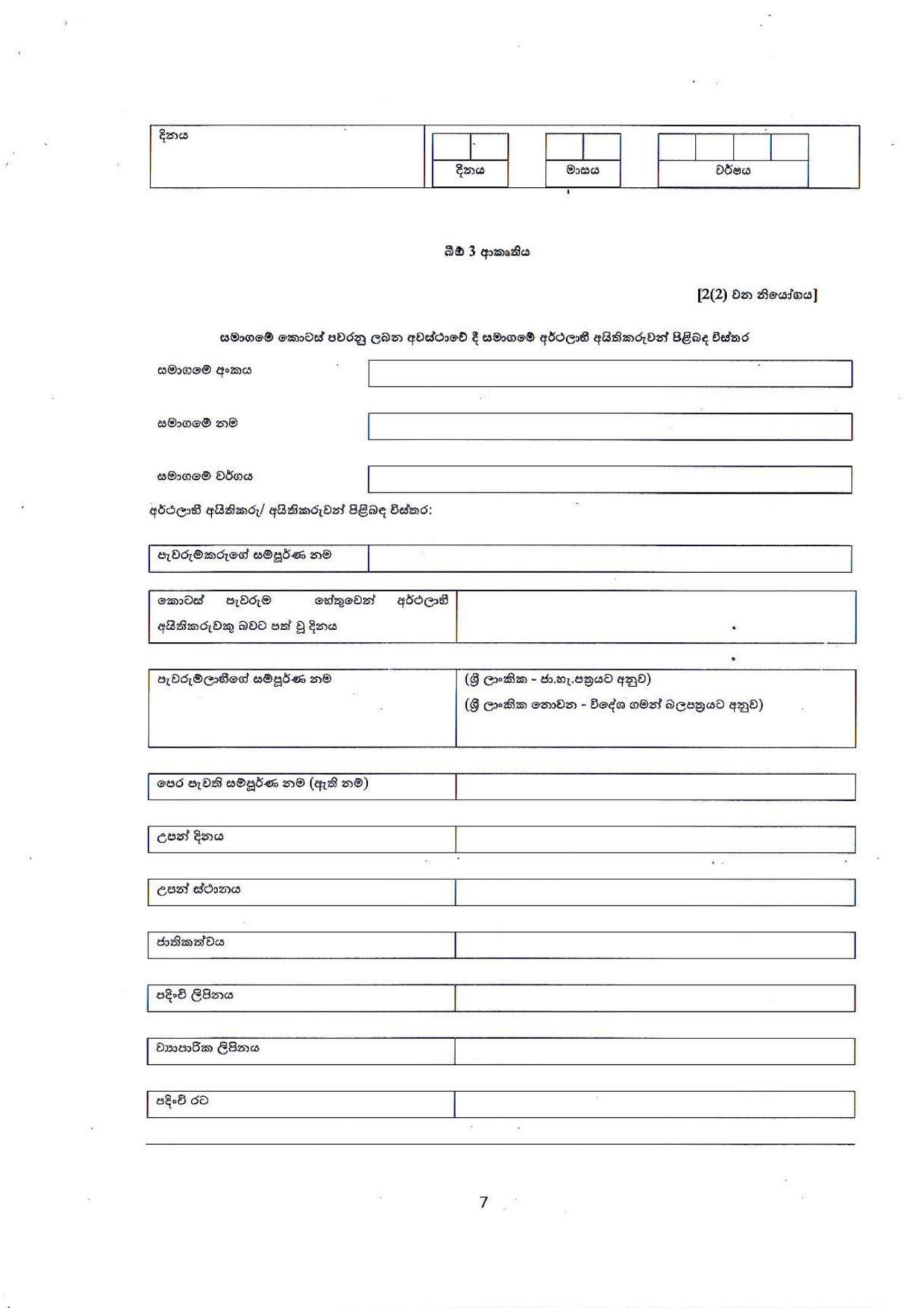 FORM BO 01 / BO 07: සමාගමෙන් 10% හෝ ඊට වැඩි ප්රතිලාභී අයිතියක් හෝ පාලනයක් දරන පුද්ගලයන් හෙළිදරව් කිරීම.