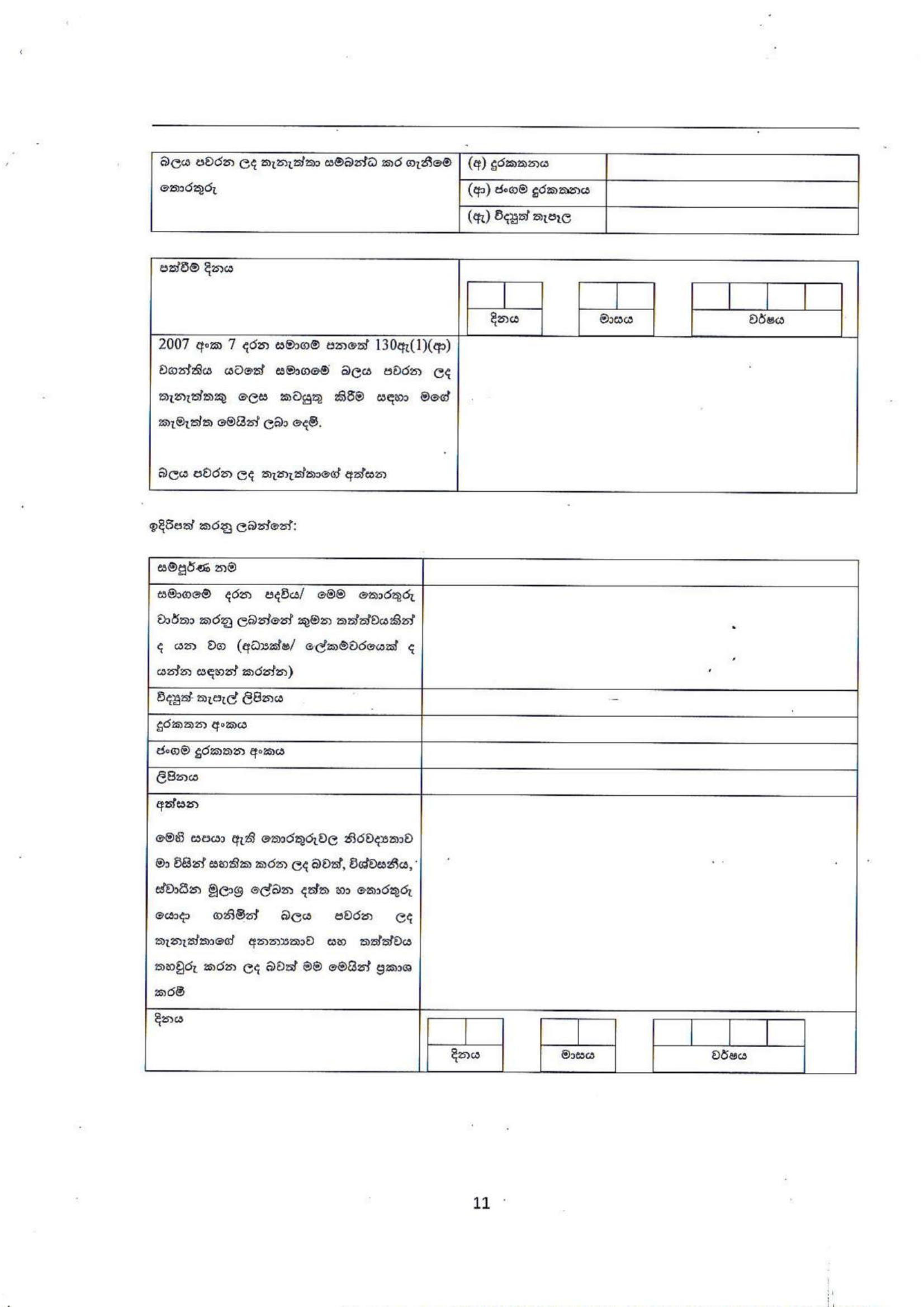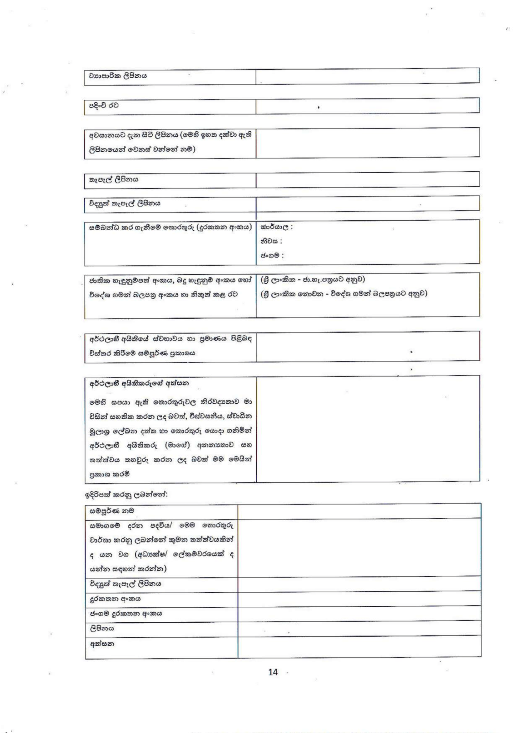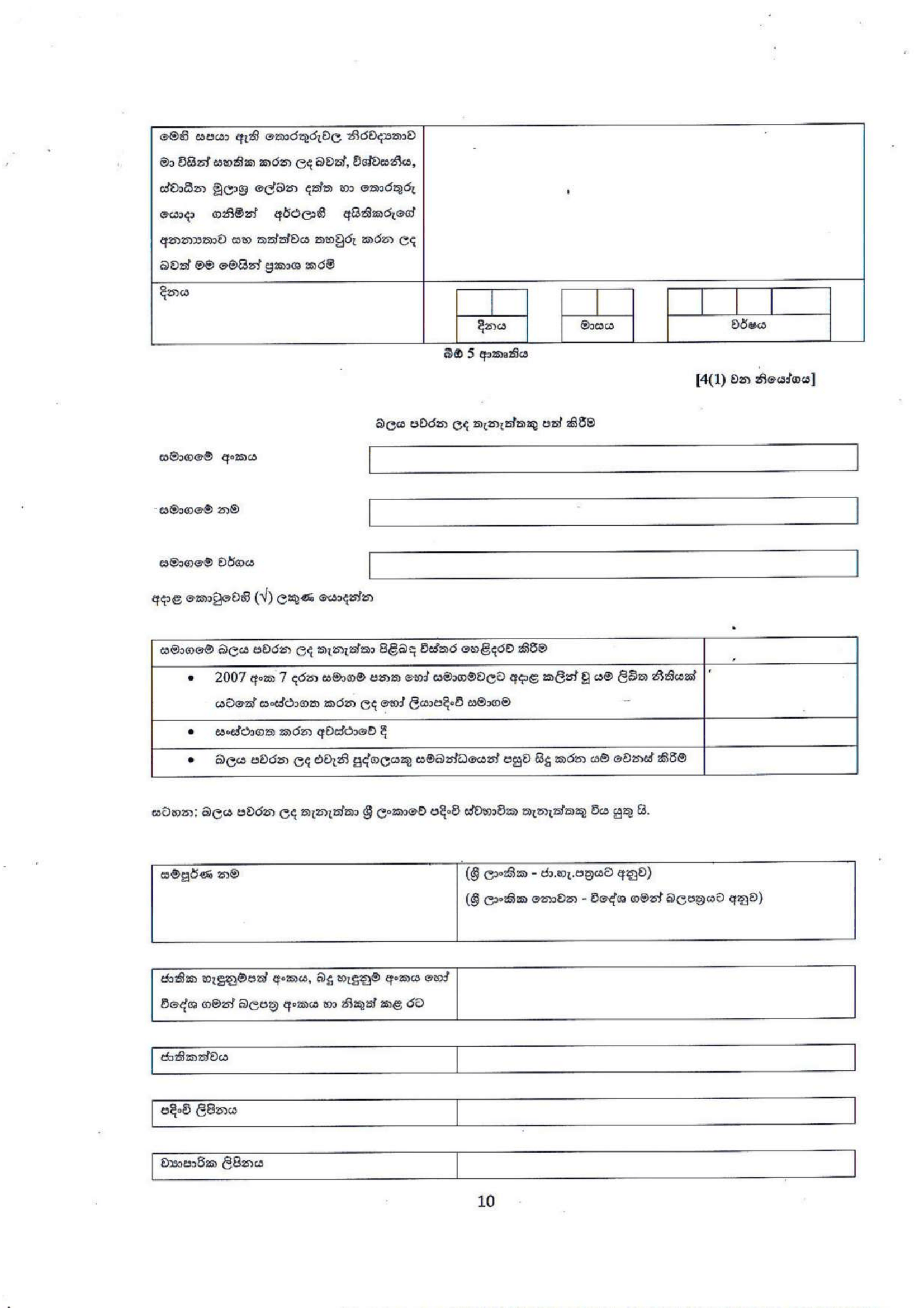 FORM BO 05: BO දත්තවල නිරවද්යතාවය පිළිබඳ වගකීම දරන "බලයලත් පුද්ගලයා" නිල වශයෙන් පත් කිරීම.